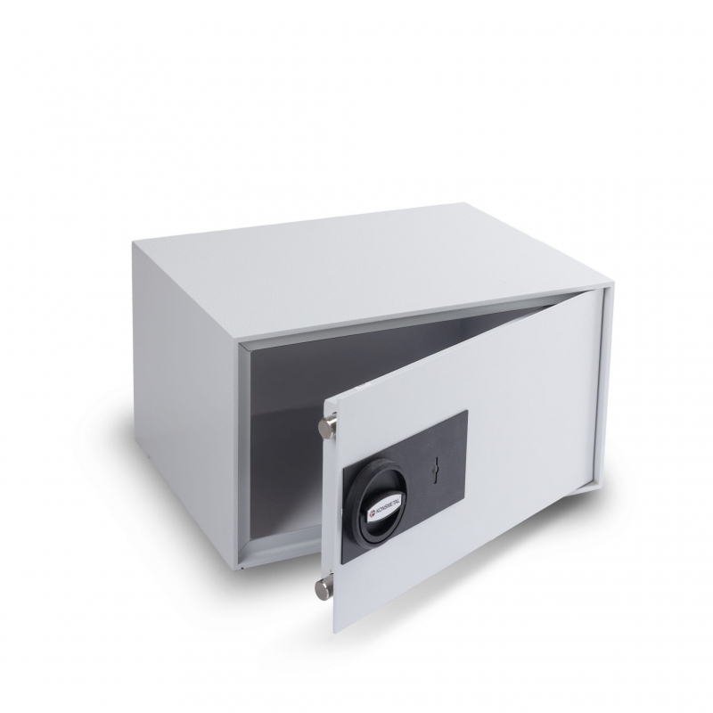 Solidne rygle o średnicy 20 mm oraz zamek kluczowy kl. A zapewniają wysoki poziom zabezpieczenia. Sejf posiada dwa otwory kotwienia w podłożu i dwa do kotwienia w ścianie, co umożliwia jego stabilne przymocowanie do podłoża lub ściany i uniemożliwia przemieszczenie się urządzenia. Zamek kluczowy kl. A w wersji podstawowej.