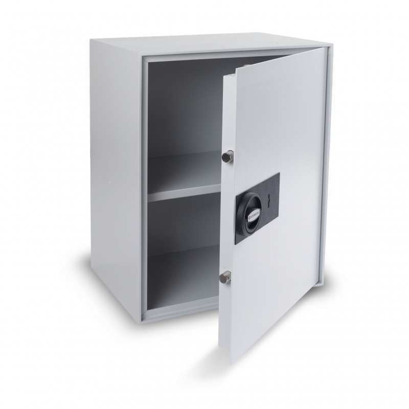 Solidne rygle o średnicy 20 mm oraz zamek kluczowy kl. A zapewniają wysoki poziom zabezpieczenia. Sejf posiada dwa otwory kotwienia w podłożu i dwa do kotwienia w ścianie, co umożliwia jego stabilne przymocowanie do podłoża lub ściany i uniemożliwia przemieszczenie się urządzenia. Zamek kluczowy kl. A w wersji podstawowej.